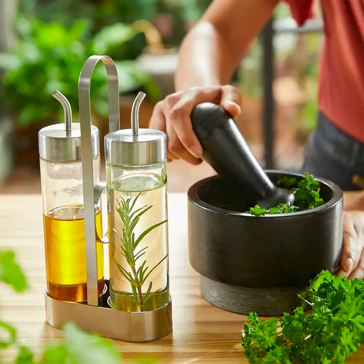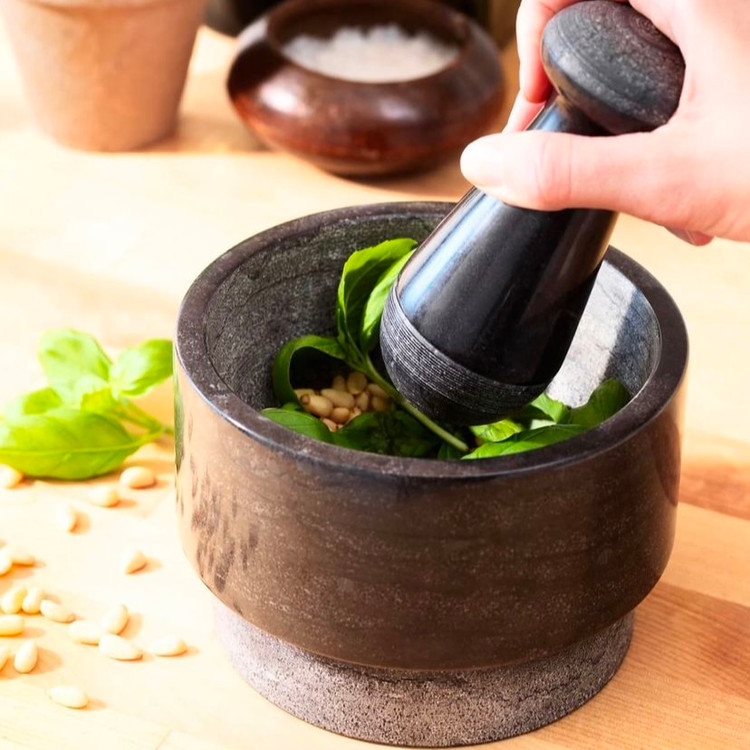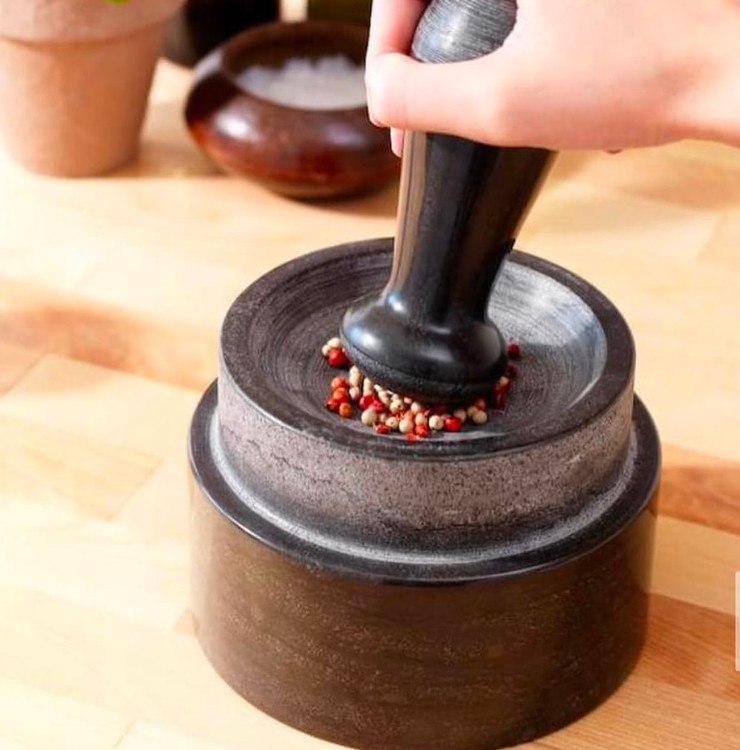 برای آسیاب کردن مقدار محدود از انتهای هاون میتوان استفاده کرد