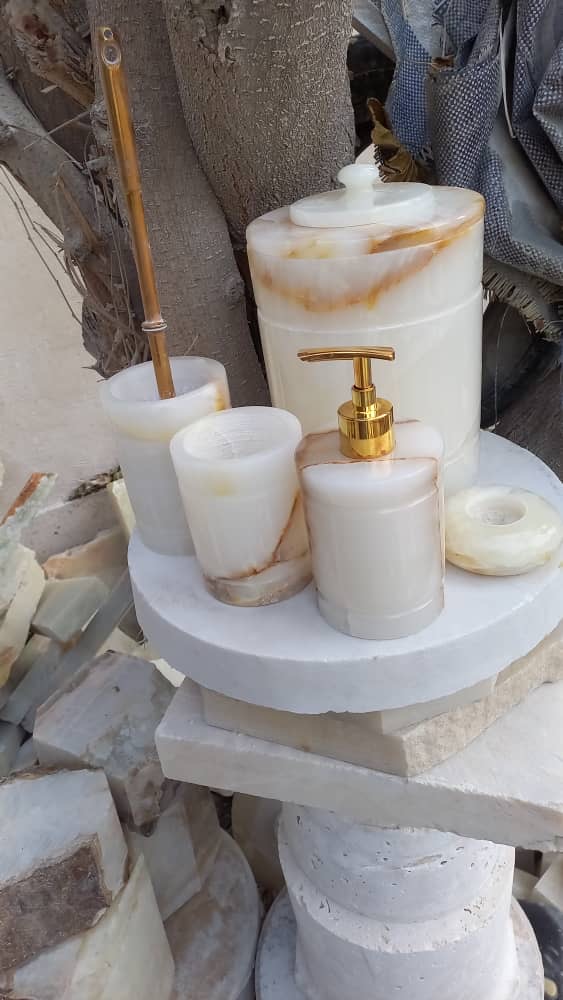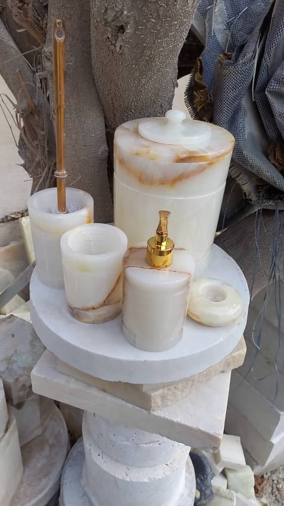 ایتمهایی مانند:جاصابونی،بانکه جهت نگهداری دارو و پنبه و ...و سینی سنگی گرد یا مستطیل یا بیضی و جا شمعی قابل اضافه می باشد.