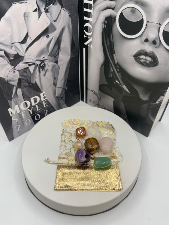 پک گوهر هفت چاکرا شامل هفت عدد تامبل سنگهای نیمه قیمتی: