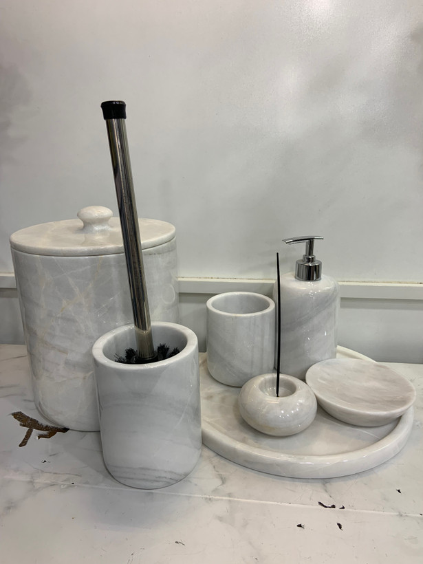 سطل زباله،جامسواکی، جای فرچه،جای صابون،جایع مایع دستشویی ،سینی گرد قطر حدود ۳۰سانتیمتر،جاعودی
