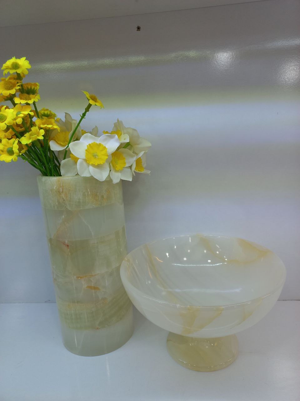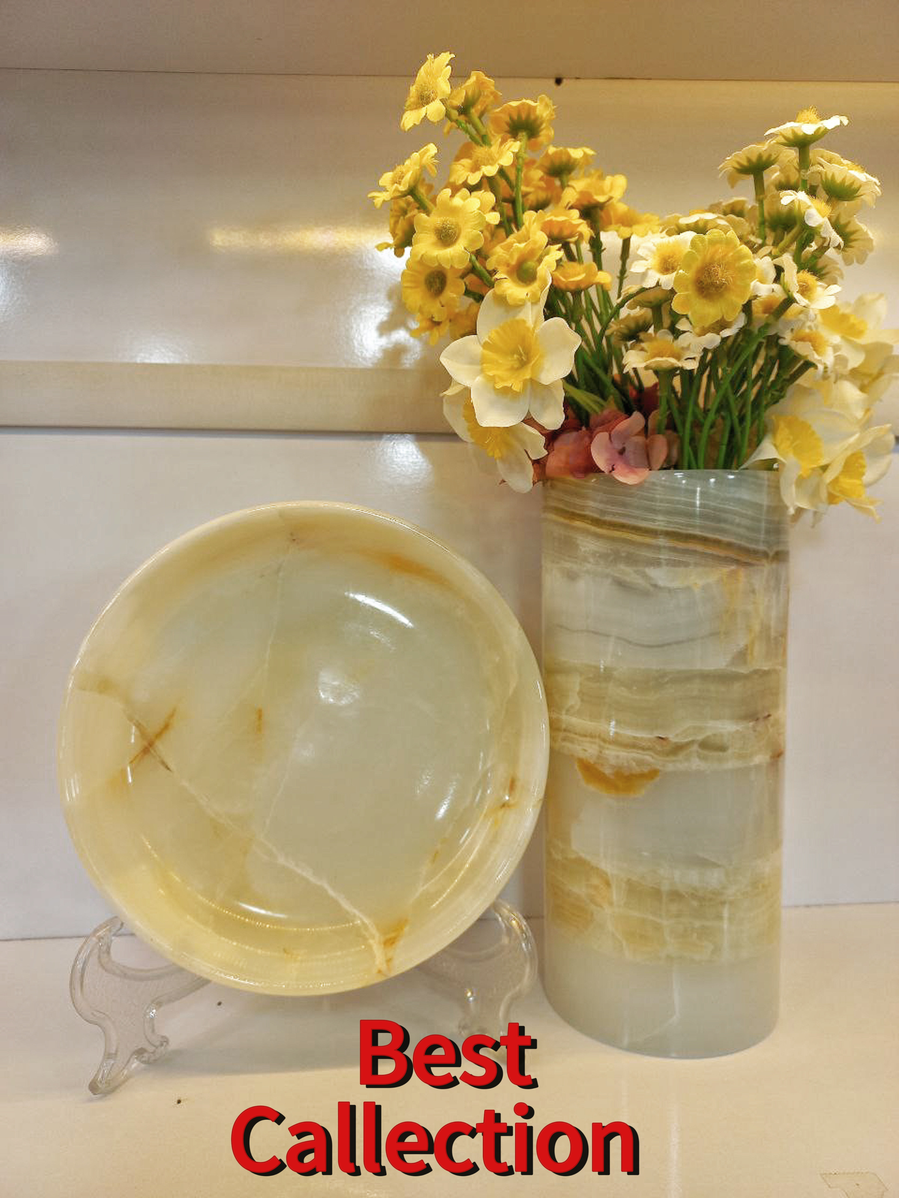 گلدان استوانه ای مرمر دورنگ